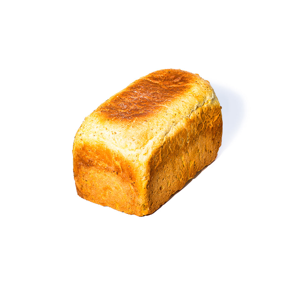 A fan favourite, this loaf is packed with chia seeds, naturally high in omega-3 three and fibre, and an excellent source of antioxidants. Our chia adopts its yellow hue from added turmeric, a beneficial spice. We bake this loaf in a large tin to provide the perfect uniform slice every time.