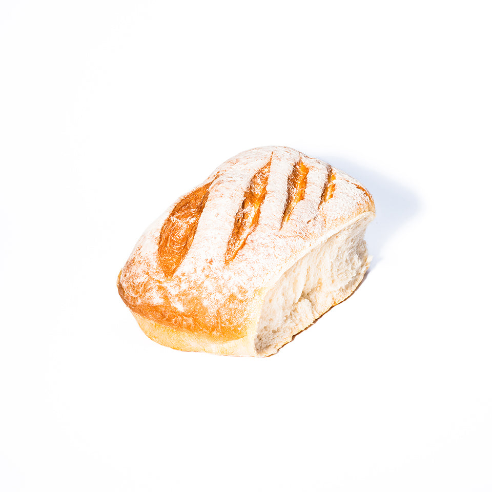 A classic white yeasted loaf made using a slow, tried, and tested method of proving and baking. Hand-cut scoring on top for a uniform rise, dusted with white flour, then baked on a tray for a natural shape. Our farmhouse recipe has been around longer than we can remember.